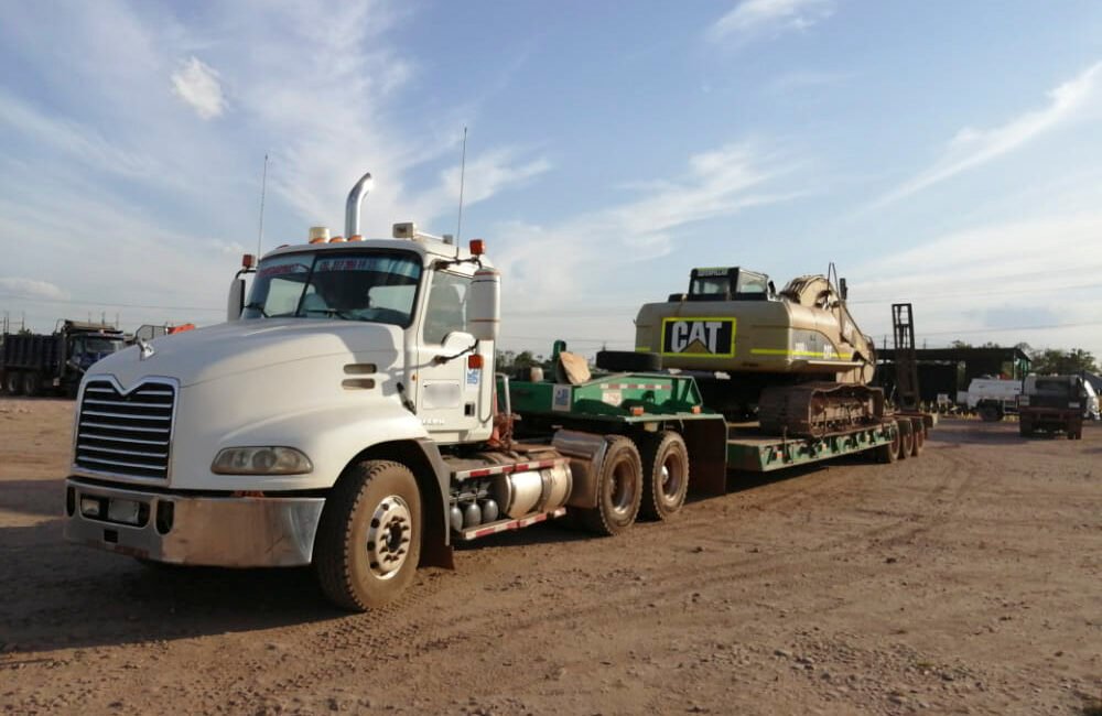 Transporte en tractocamiones con remolques normales, tipo cama baja y cama alta para cargas especiales, sobredimensionadas o extrapesadas, incluyendo permisos y pólizas competentes.